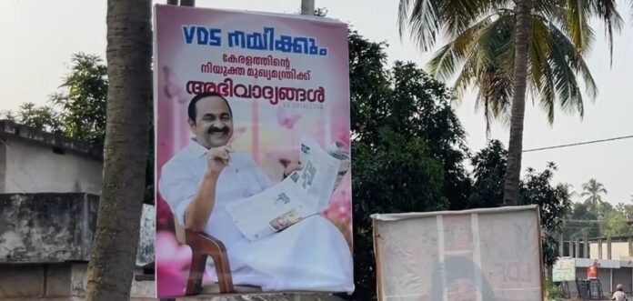 ‘വി ഡി എസ് നയിക്കും, കേരളത്തിന്റെ നിയുക്ത മുഖ്യമന്ത്രിക്ക് അഭിവാദ്യങ്ങള്’, എന്ന വാചകങ്ങളാണ് ഫ്ലക്സില് ഉണ്ടായിരുന്നത്. വണ്ടൂര് ബൈപ്പാസ് റോഡിലും പൂക്കളത്തുമാണ് ഫ്ലക്സ് ബോര്ഡുകള് സ്ഥാപിച്ചിരുന്നത്. ഇന്നലെ തവനൂരിലും വി ഡി സതീശനെ പിന്തുണച്ച് ഫ്ലക്സ് സ്ഥാപിച്ചിരുന്നു. വോട്ടെടുപ്പ് കഴിഞ്ഞതിന് പിന്നാലെയായിരുന്നു കോണ്ഗ്രസില് മുഖ്യമന്ത്രി പദവുമായി ബന്ധപ്പെട്ട ചര്ച്ചകള് ഉടലെടുത്തത്.