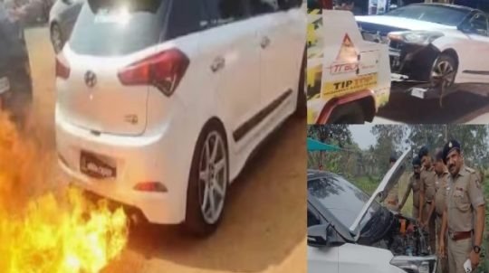 കൊല്ലം: വിവാഹച്ചടങ്ങിന് തീ തുപ്പി നിരത്തില് ഭീതി സൃഷ്ടിച്ച് കാർ. വൈറലായതോടെ കാറും ഉടമയെയും കണ്ടെത്തി മോട്ടോർ വാഹന വകുപ്പ് കടുത്ത നടപടി സ്വീകരിച്ചു. മുഖത്തലയ്ക്ക് സമീപം വർക്ക്ഷോപ്പിൽ നിന്നാണ് എൻഫോഴ്സ്മെന്റ് ആർടിഒ ദിലുവിന്റെ നേതൃത്വത്തിലുള്ള സംഘം വാഹനം കണ്ടെത്തിയത്. രൂപമാറ്റം വരുത്തി പുതിയ നിറമാക്കണമെന്ന് ആവശ്യപ്പെട്ടാണ് ഉടമ വാഹനം എത്തിച്ചതെന്ന് വർക്ക് ഷോപ് ജീവനക്കാർ പറഞ്ഞു.